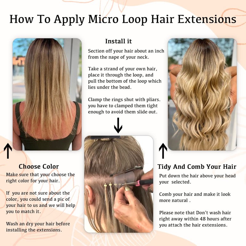 2-Healthy:Micro loop hair extensions is applied professionally with micro rings.No heat,this a healthy method which is harmless to your hair.