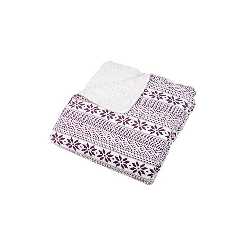 Micro-Pro White/Purple Fairisle Fleece Blanket Soft Sherpa Home Sofa Bed Throw 130x160cm