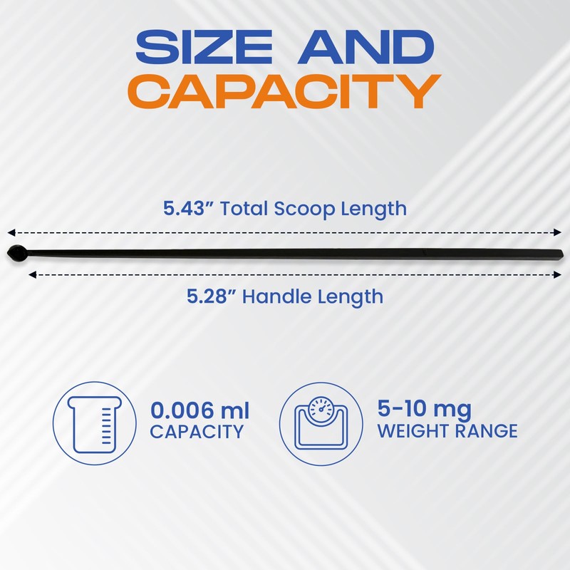 Micro Scoops 5mg to 10mg scoop Plastic Milligram Measuring Spoons, 0.006 mL Capacity Micro Scoop, BPA-Free, Static-Free, Long Handled Milligram mg Measuring Spoons for Powder (10 Scoops)