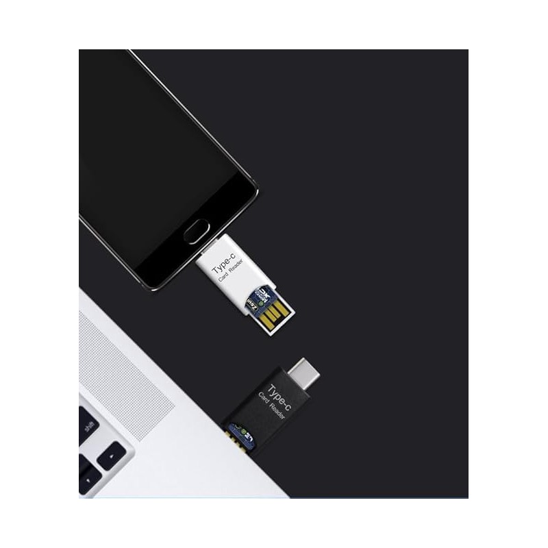 - 2-in-1 OTG card reader with USB Type-C port, compatible with MacBook, Samsung Galaxy.