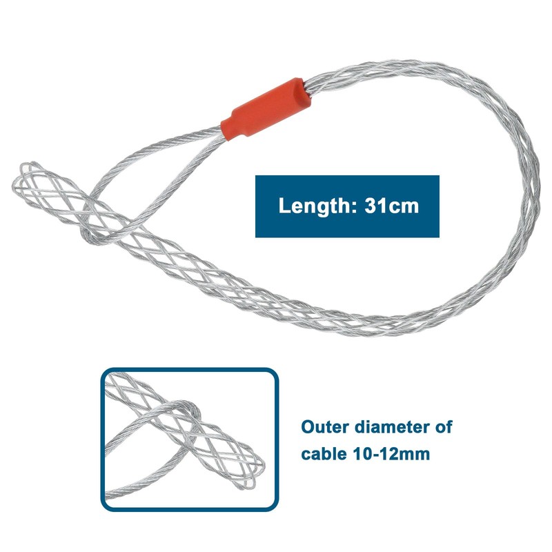 Micro Traders Cable Pulling Grip Sock for 10-12mm Cable Galvanized Stainless Steel Anti-Slip Cable Traction Sleeve Flexible Mesh Rope Cable Sock 31cm Length Red