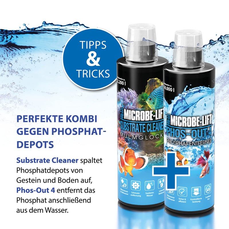 - Phosphate remover – Our Phos-Out 4 binds organic and inorganic phosphates and allows controlled lowering of the PO4 value. This effectively and quickly reduces the phosphate in the aquarium water to the desired level.