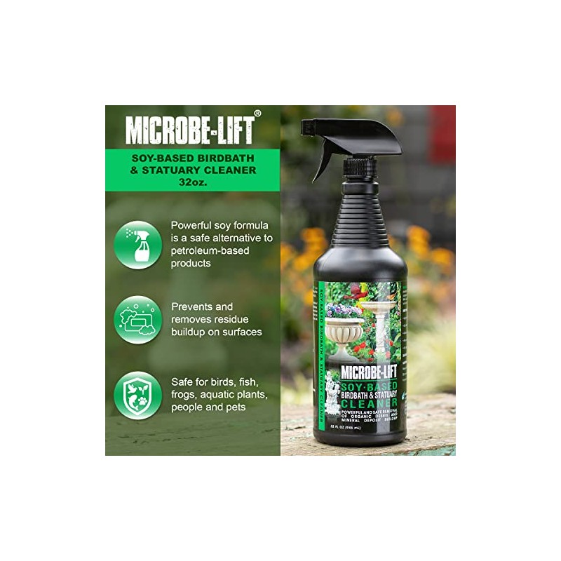 MICROBE-LIFT Soy-Based Birdbath and Statuary Cleaner and Surface Treatment for Outdoor Birdbaths and Statues, Safe for Birds, Fish, and Frogs, 32 Ounces