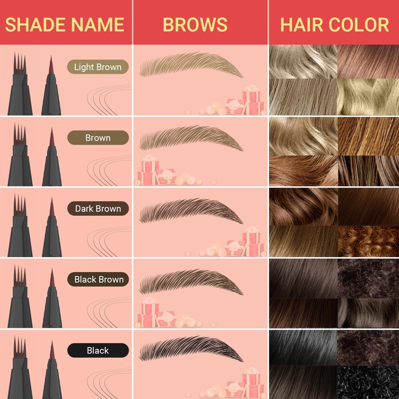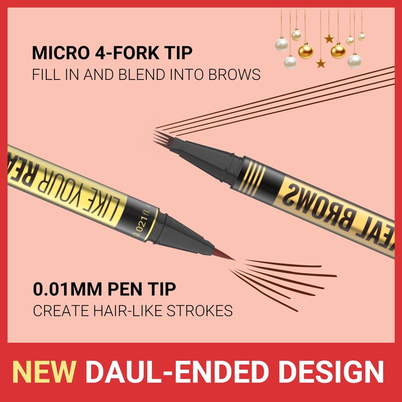 - Magical 2-in-1 brow pen: 2-in-1 dual-ended magical eyebrow pen has micro-fork tip to create hair-like strokes, draw 3D natural real hair; and ultra-precise eyebrow pencil to fill in sparse brow areas; BROWN is for brown to medium brown and auburn hair