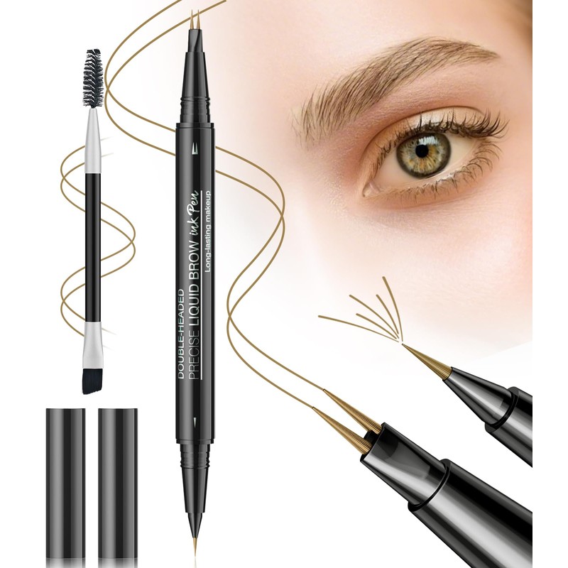 - 2-IN-1 EYEBROW PEN - Say goodbye to sparse eyebrows with this magic eyebrow pen. The micro fork tip quickly fills sparse areas, blending colors into eyebrows to create natural and plump eyebrows. The precise brush tip draws the brow tail and further improve the details of the eyebrows to create 3D natural and realistic hair. You can also use the microblading eyebrow pencil to draw eyeliner, and eyelashes, and fill your hairline.