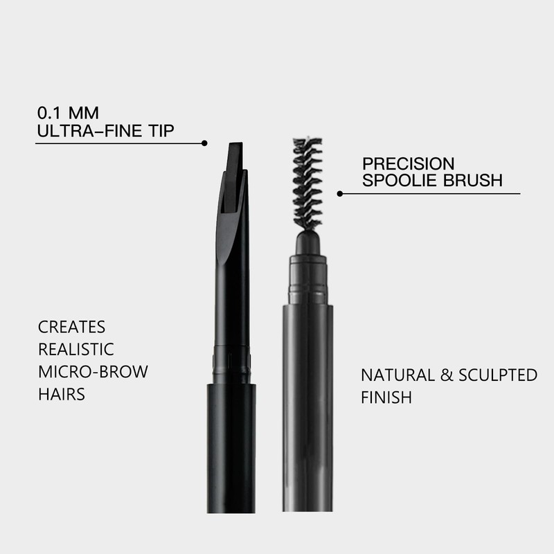 - 0.1MM ULTRA-FINE TIP & DUAL-ENDED DESIGN: Achieve precise microblading eyebrow pencil effects with a 0.1mm ultra-fine mechanical pencil tip for hair-like strokes. One end features a thin eyebrow pencil for detailing sparse areas, while the other has a spoolie for blending. Includes micro brow pencil technology and waterproof brow pencil performance.