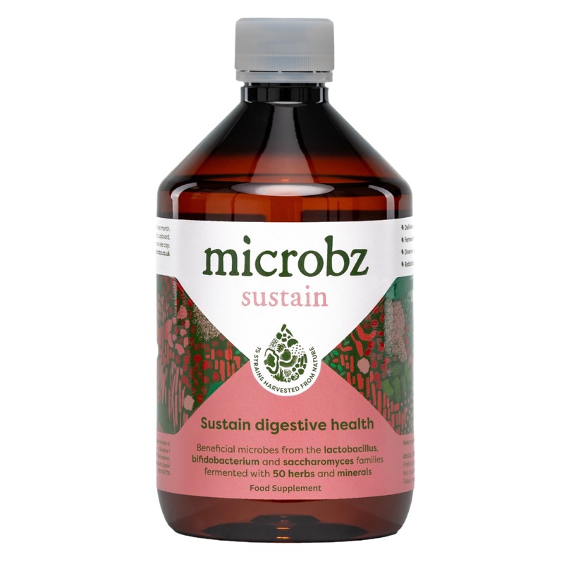 - FERMENTED FOR MAXIMUM BENEFITS: Microbz SUSTAIN is enriched with 50 natural herbs including dandelion, ginger, and camu camu, to support digestion, while promoting gut health.