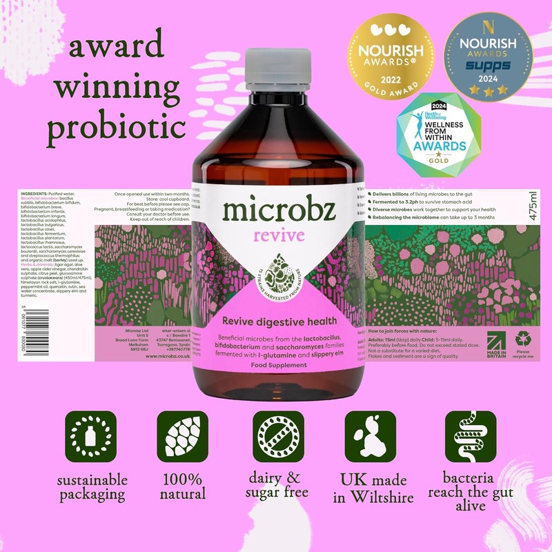 MICROBZ Revive Liquid Probiotic – Multi-Strain Live Cultures for Gut Health & Digestive Support – Bio Culture Complex – 1-Month Supply – Vegan