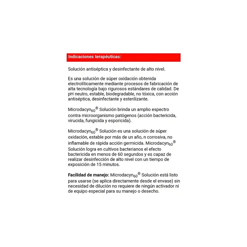 - Microdacyn60, solución desinfectante de 240ml, con dosificador, ideal para la limpieza de heridas y tejidos.