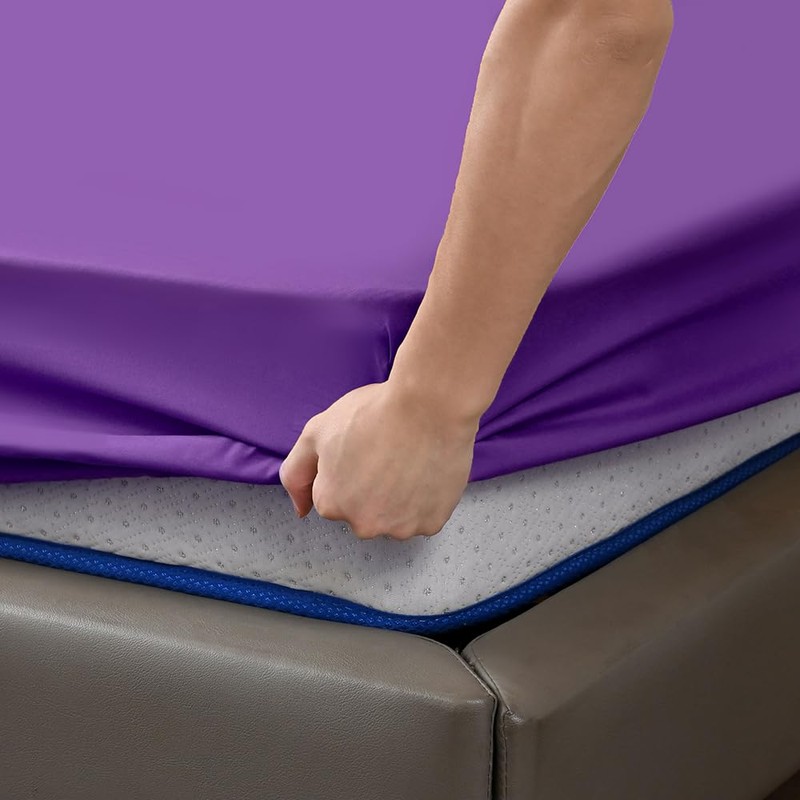 Microfiber Fitted Sheet King – 25CM Deep Pocket Bed Sheet – Plain Purple Bottom Sheet – Soft, Wrinkle, Shrink & Fade Resistant – Hotel Quality Bedding – Machine Washable (King, Purple)