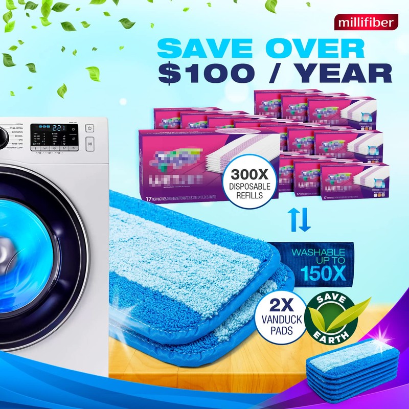 • Save Money - Reusable Microfiber Mop Pads Replace Hundreds of Disposable Pads
