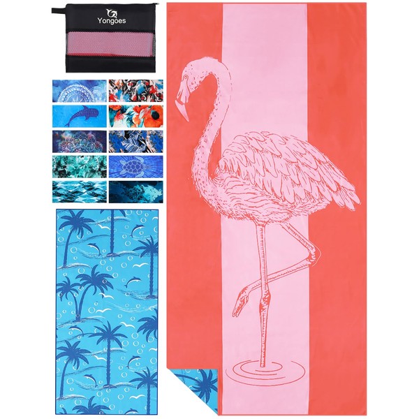 Microfiber Thin Lightweight Beach Towel Sand Free Fast Dry Absorbent Large Towels for Swimming Pool Travel Vacation Beach Accessories Essentials Flamingo
