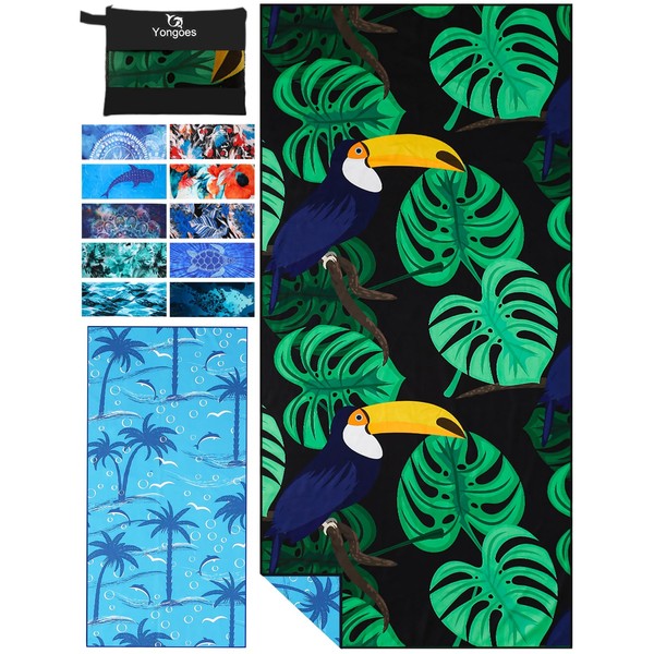 Microfiber Thin Lightweight Beach Towel Sand Free Fast Dry Absorbent Large Towels for Swimming Pool Travel Vacation Beach Accessories Essentials Toucan