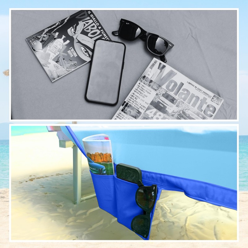 - Practical side pockets multi-purpose: thanks to the large side pockets, you can conveniently store your smartphone, glasses, sun cream and small items. Everything stays protected and within easy reach, so you can relax or lose important accessories without worry.
