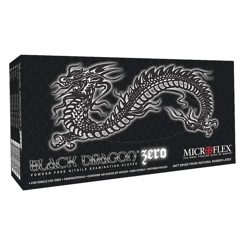 MICROFLEX Black Dragon Zero BD-100N 5mil Disposable Nitrile Gloves w/Textured Fingertips for Automotive Aftermarket - Large, Black (Case of 1000)