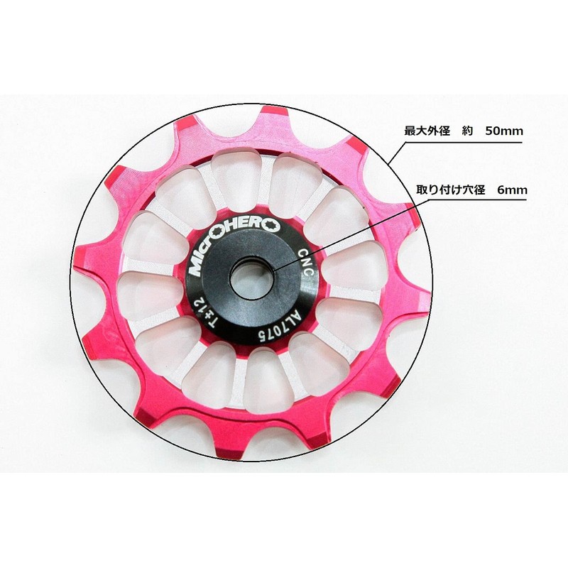 - Micro Hero Aluminum CNC Body with ceramic bearings, this is a lightweight rear derailleur pulley. The use of ceramic bearings makes it not only rotatable but also durable. Main Specifications: Mounting Hole Diameter: 0.2 / 0.2 / 0.2 inches (4 / 5 / 6 mm) Compatible Rear Derailleur: Shimano CamagnoLO and SRAM 7 - 12 speed derailleur; Material: Aluminum alloy 7075 T6 CNC cutting; Bearing: Ceramic bearings provide smooth rotation and improved durability compared to resin pulleys. Up to middle grade. Ideal for upgrading bush-type derailleurs equipped with derailleurs. Can be used with both guide pulley (top side) and tension pulley (lower side). *Vinyl package, no manual (English language not guaranteed)