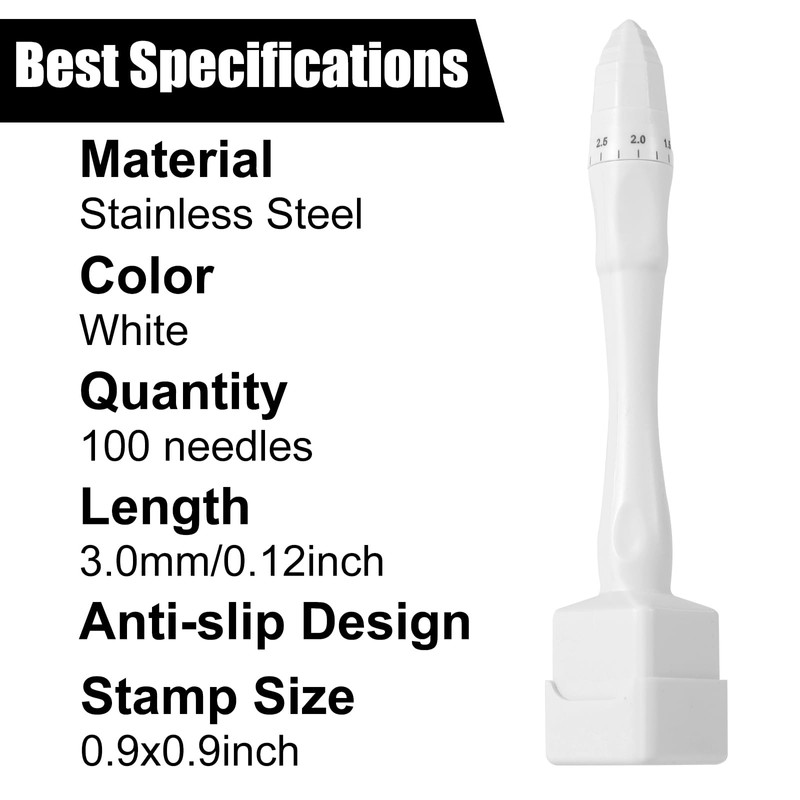 - Package Content: You will get 1 piece of microneedling stamp. With 3mm/0.12 inch needles, it's very suitable for beginners.