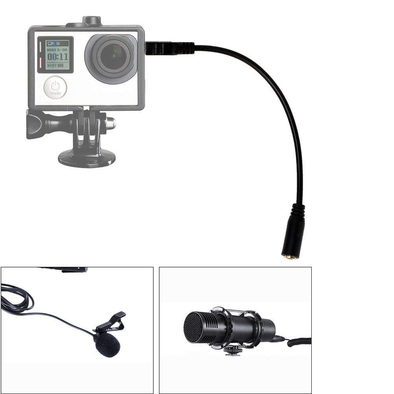 Microphone Adapter Cable, Mini USB to 3.5 mm Headphone Jack Adapter Cable Three Pole Camera Adapter Cable for Hero3/3+/4 Camera