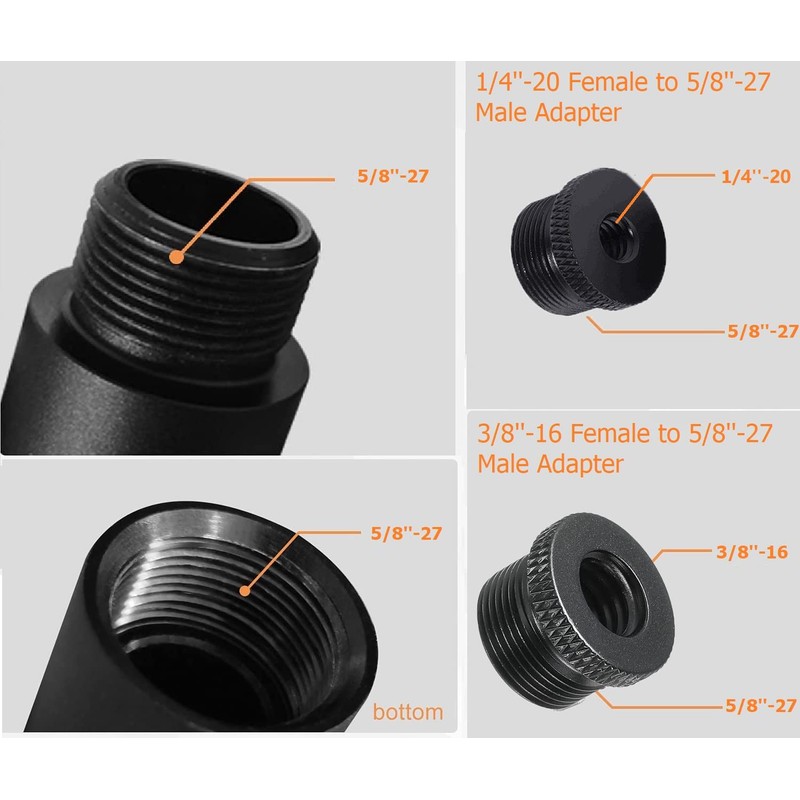 - Wide Application: There are two 3/8'' female to 5/8'' male and two 1/4''femal to 5/8'' male adapters, apply for most mic stands, shock mounts, boom arms,Tripods and other recording equipment.