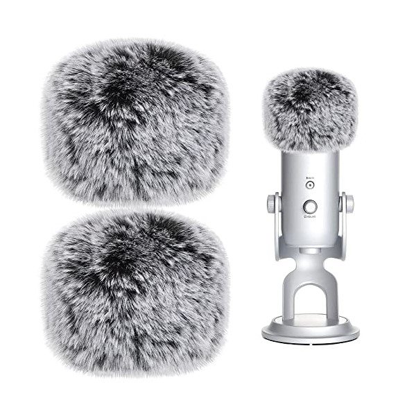 Microphone Furry Windscreen Muff 2 Pieces Grey Mic Wind Cover Fluffy Mic Cover Fuzzy Microphone Pop Filters Compatible with Blue