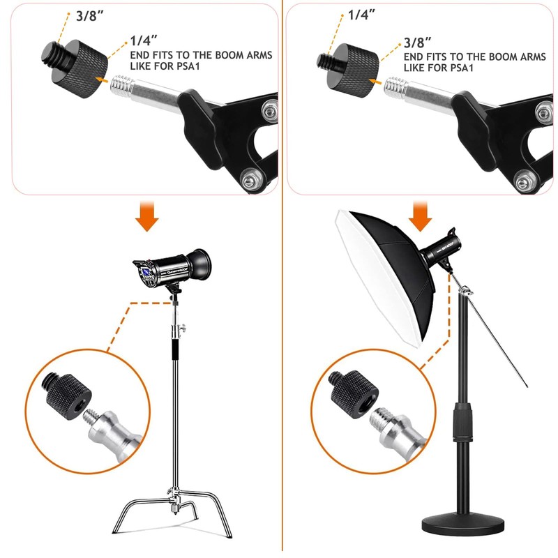 - 2 sizes: you will receive 4 microphone stand adapters, including 2 different screw adaptors: 3/8 female to 1/4 male, 1/4 female to 3/8 plug, suitable for most microphone stands