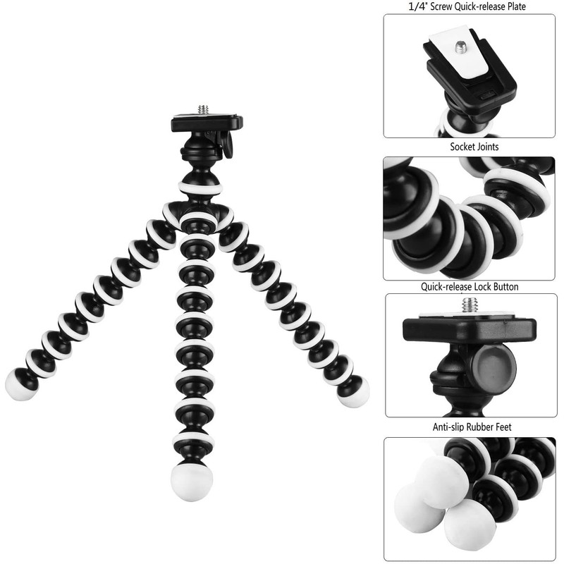 micros2u micros2u Octopus Flexible Robust Gorilla Tripod For Gopro, Action Cams, Camera, Smartphone, iPhone. Landscape/Portrait Modes