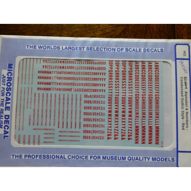 Microscale Decal #90025 Gothic - Condensed Letters and Numbers - Red