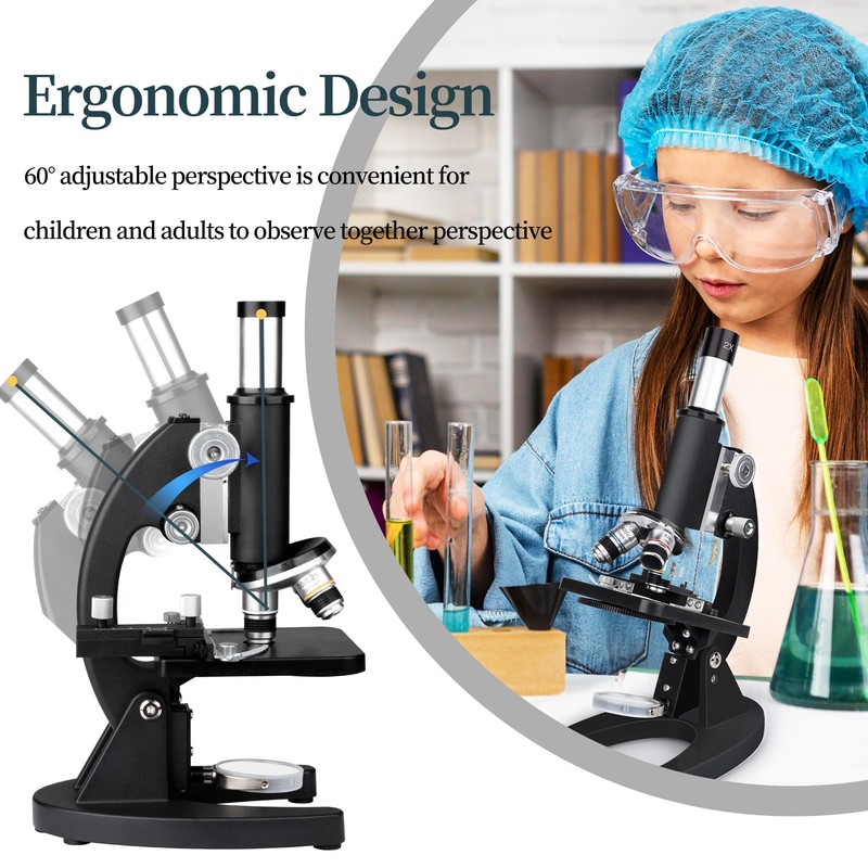 Microscope for Kids, 100X-2000X All-Metal Profesional Microscope for Adults with Microscope Slides and Specimen Preparation Kit, Compound Monocular Microscope for Lab School Home Education, Black