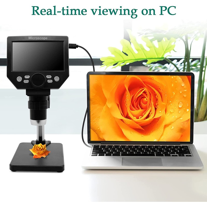 - 🔍 【Admite Visualización en Tiempo Real en PC】 Este microscopio digital de 4,3 pulgadas también admite visualización en tiempo real cuando se conecta a una computadora a través de un cable USB y ve el objeto en la pantalla de la PC, el efecto de zoom se muestra en una pantalla más grande, lo que es conveniente para que varias personas observen al mismo tiempo . (Cuanto más grande sea el monitor conectado, mayor será el aumento)