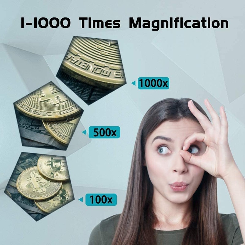 - 🔍 【Pantalla LCD de Alta Definición de 4,3 Pulgadas】 Equipado con una pantalla LCD HD de 4,3 pulgadas proporciona un buen campo de visión para una fácil visualización. 8 millones de píxeles HD, amplificación continua 1-1000x. Alimentado por batería recargable de iones de litio (2,5 horas de tiempo de trabajo) o USB. La pantalla electrónica tiene las características de fácil uso, plug and play, alta definición y alto brillo.