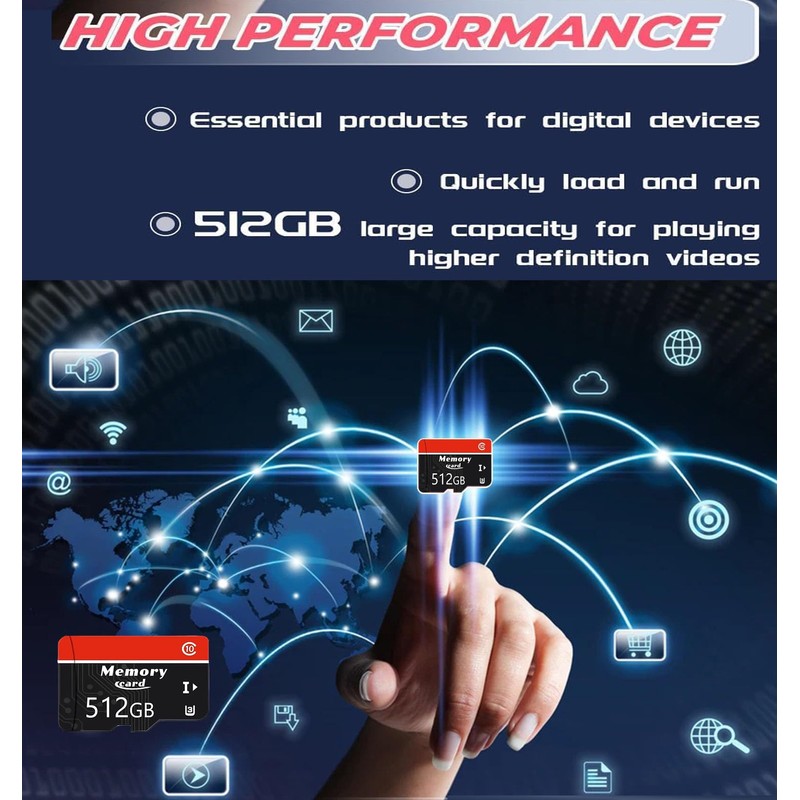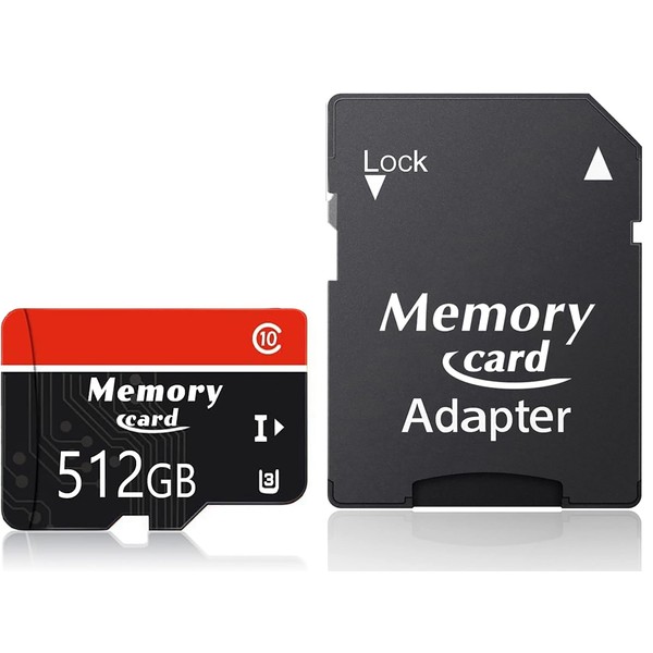 MicroSDXC MicroSD Card 512GB Micro Card + Adapter, 100MB/s Read Speed, C10 U3 V30 A2, 4K UHD for Smartphone,Camera and Drone