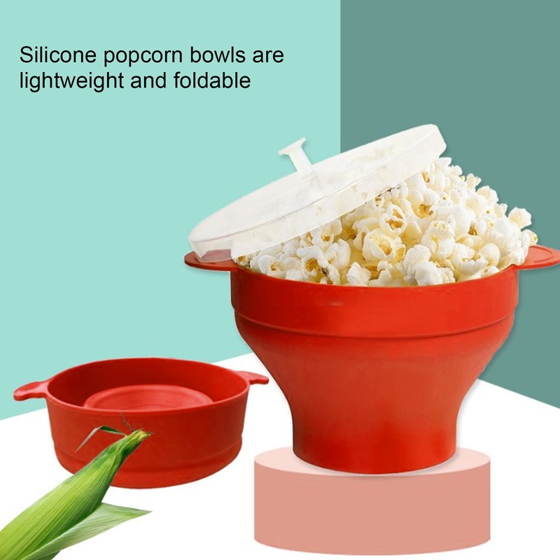 Microwavable Popcorn Bowl with Transparent Lid and Handle Collapsible Silicone Popcorn Maker for Home Red