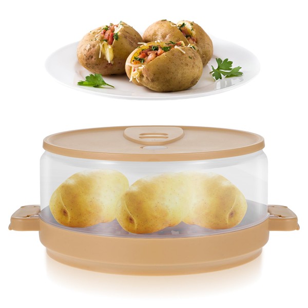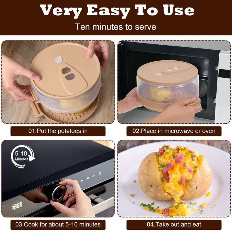 - Advanced Cooking Technology:Why does the baked potato microwave cooker make it so easy to make soft and fluffy baked potatoes in no time at all? The reason is that the microwave potato cookware uses a steam valve at the top plus a raised bottom to create a steam cycle that cooks the potatoes at a high temperature so they are heated more evenly, And the high temperature airflow cooks every part of the potatoes, Making sure that you can make a delicious potato dinner every time!