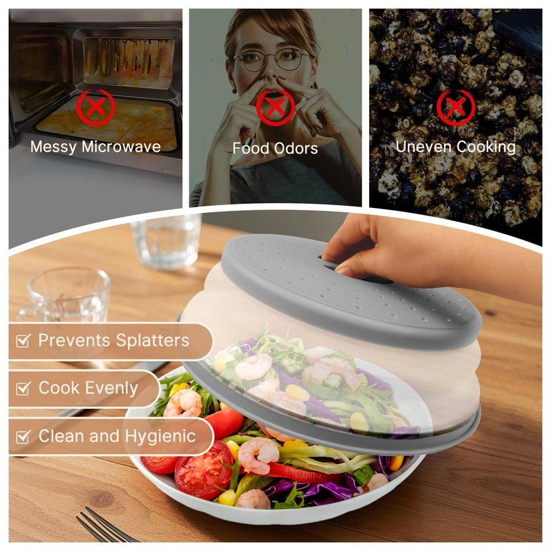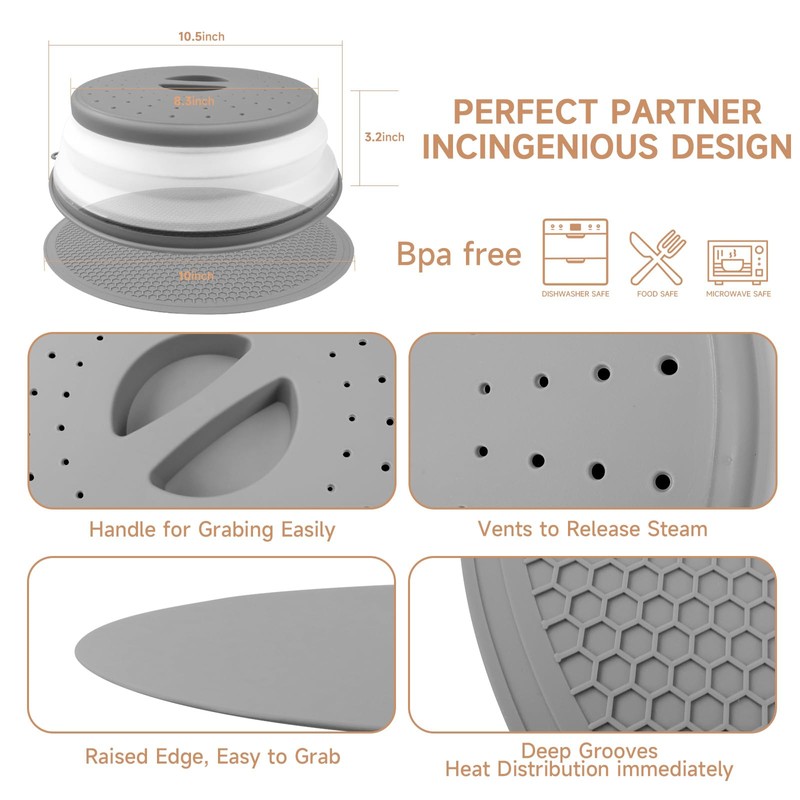 • 2 IN 1 MATCH:The 10.5"microwave cover suits most bowls/plates. With a 10.5" mat as bowl holder, it keeps the microwave clean and prevents burns, ideal for home microwaves
