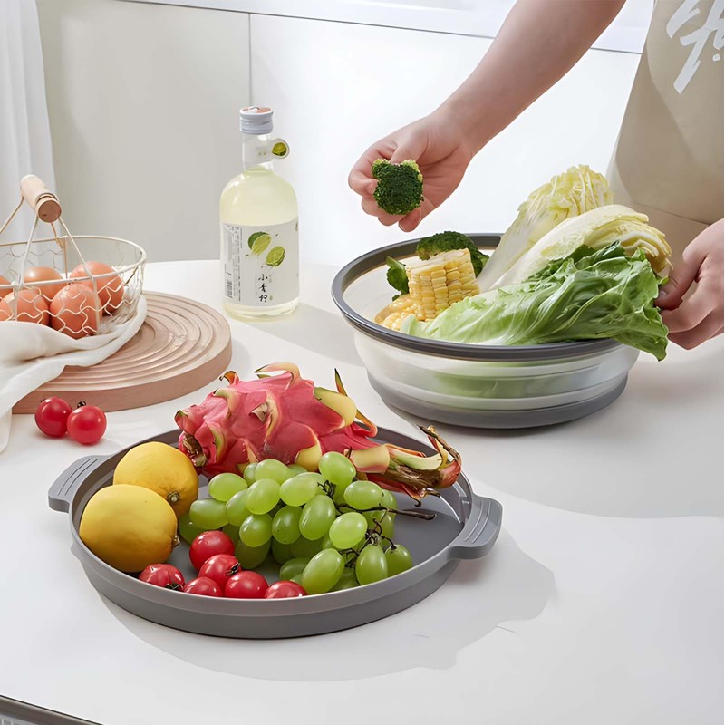 But the benefits don’t stop there. This multi-functional lid also serves as a freshness cover, helping to keep your food fresh longer. Additionally, it can be used as a water strainer for washing produce, adding to its versatility. The base of the lid can even function as a fruit plate, making it a valuable multi-purpose tool for various kitchen tasks.