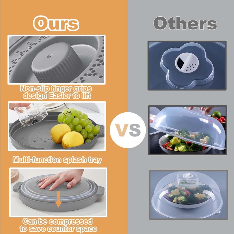 - Multi-functional Use:Microwave oven splash-proof lid avoids food spills,and can be used as a freshness lid or water strainer to wash produce, the base can be used as a fruit plate, one lid can be used for multiple purposes to meet a variety of needs.