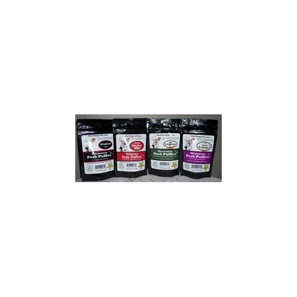 Chef Piggy Tail's 4-pack Best Seller Sampler includes a 2-ounce package of each flavor: Original, Sassy Red Pepper, Smokey BBQ and Jalapeno. Each 2 oz package of our microwave pork rinds will produce approximately 4 cups when puffed in your microwave. Our pork rind serving size is 1/2 ounce (about 1 cup when puffed); however, with Chef Piggy Tail's Microwave Pork Rinds, you can cook and eat as many or as few pork rinds as you want. No waste. DIRECTIONS: Empty 1/8 cup of pork rind pellets onto a PAPER plate paper towel. Spread the pellets so they are not stacked up on top of each other. NOTE: Consider your first batch to be a test batch. This is because microwave ovens cook at different rates. Start with a time of 3 minutes, when the pellets have finished puffing, stop time and make a note as to the cook time. If some of the pellets don't puff up all the way, or if a few burn, adjust the time up or down by ten or fifteen seconds. They don't make any noise as they puff up and they don't splatter. When they finish cooking they will snap, cracklin' and pop! This will continue for a few seconds. Let sit for about 30 seconds after cooking to achieve that crunchy taste. If you pop up more than you can eat, keep them in a zip lock bag for later. The microwave pellets should not be refrigerated and may be stored at room temperature for at least 1 year. Don't have a microwave? No worries. Our Chef Piggy Tail's cook up extra crunchy in the oven, too. Simply heat oven to 450 degrees and spread pellets on a baking sheet. Bake 5-10 minutes until puffed. Cool and enjoy.