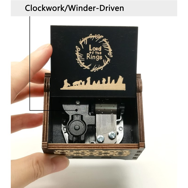 - 【Clockwork Driven】Tighten the handle and release music box will play "lord of the rings" theme