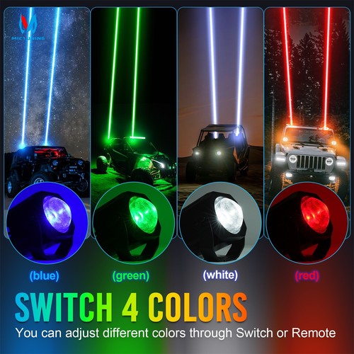 MICTUNING Laser Whip Lights, Whipless Antenna, Spot Beam Pod Lights LED, 4 Colors Rocker Switch Remote Control for UTV Polaris RZR Can-Am Maverick X3 CFmoto Kawasaki