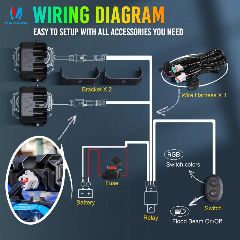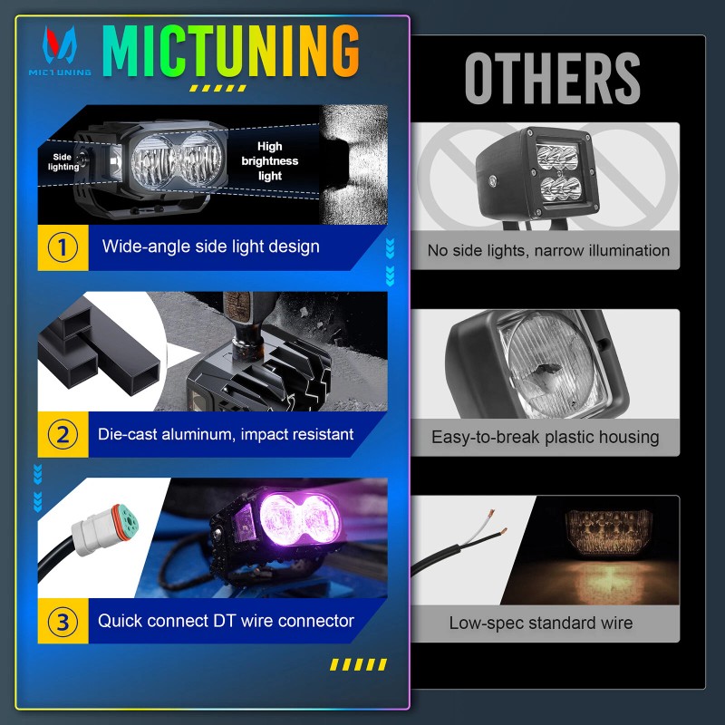 The MICTUNING K3 LED Light Pods offer ultra-bright 56W power and 7 RGB color options, including a stunning gradient mode, to match any style or situation.