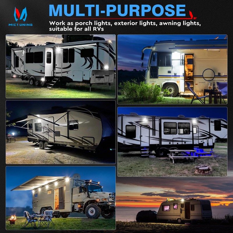 - Wide Application - Work as porch lights, exterior lights, awning lights, suitable for 12-24V RVs, trailers, campers, caravan, motorhome, marine, cabinet and so on
