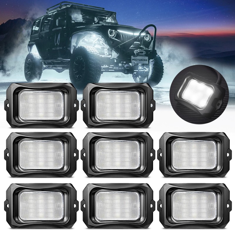 MICTUNING 8 Pods Pure White LED Rock Lights Kit Underglow Underbody Lighting Kit