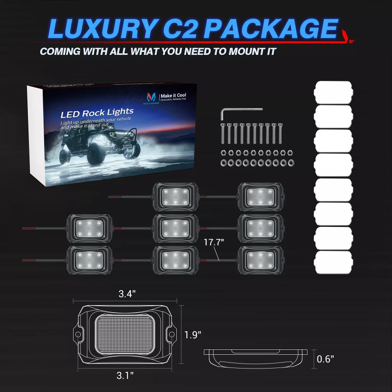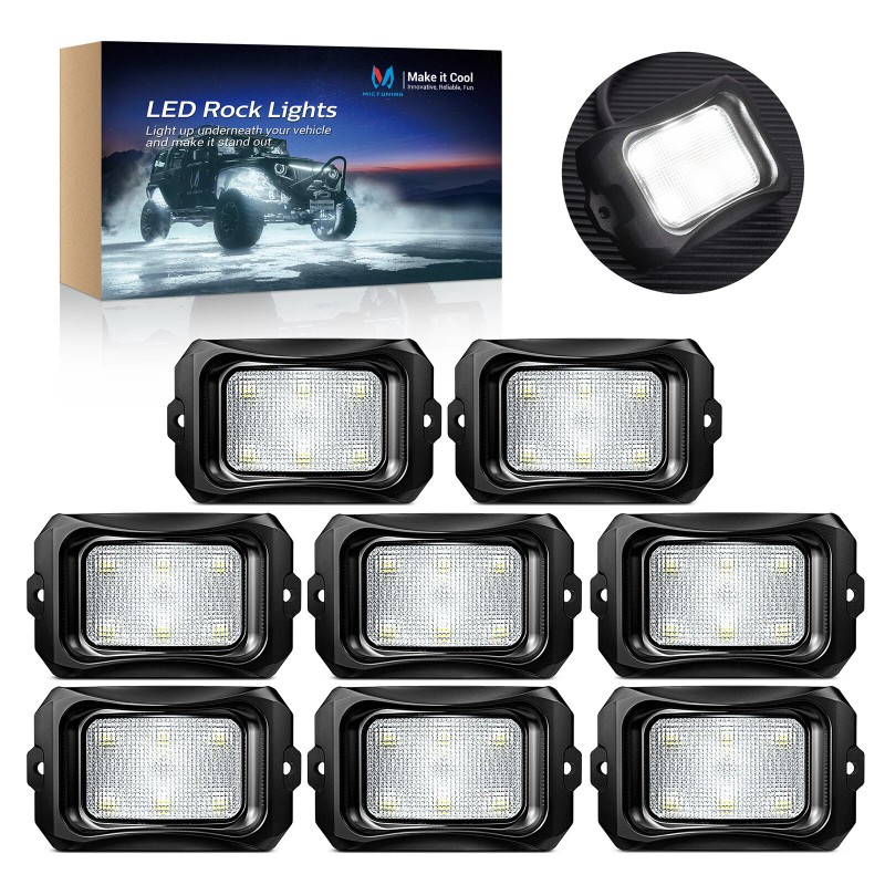 2. Pure White Color - The C2 White LED Rock Lights adopt advanced LED technology, features pure colors, has separate pure white light. NOT LIKE OTHERS, WITH MIXED COLORS AND WITHOUT WHITE LIGHT