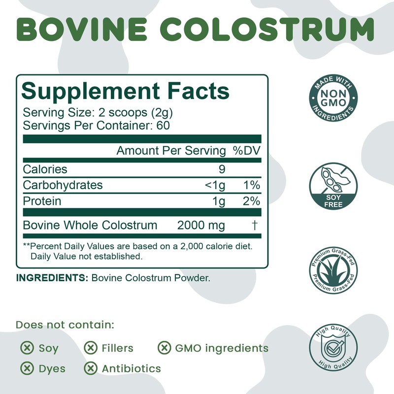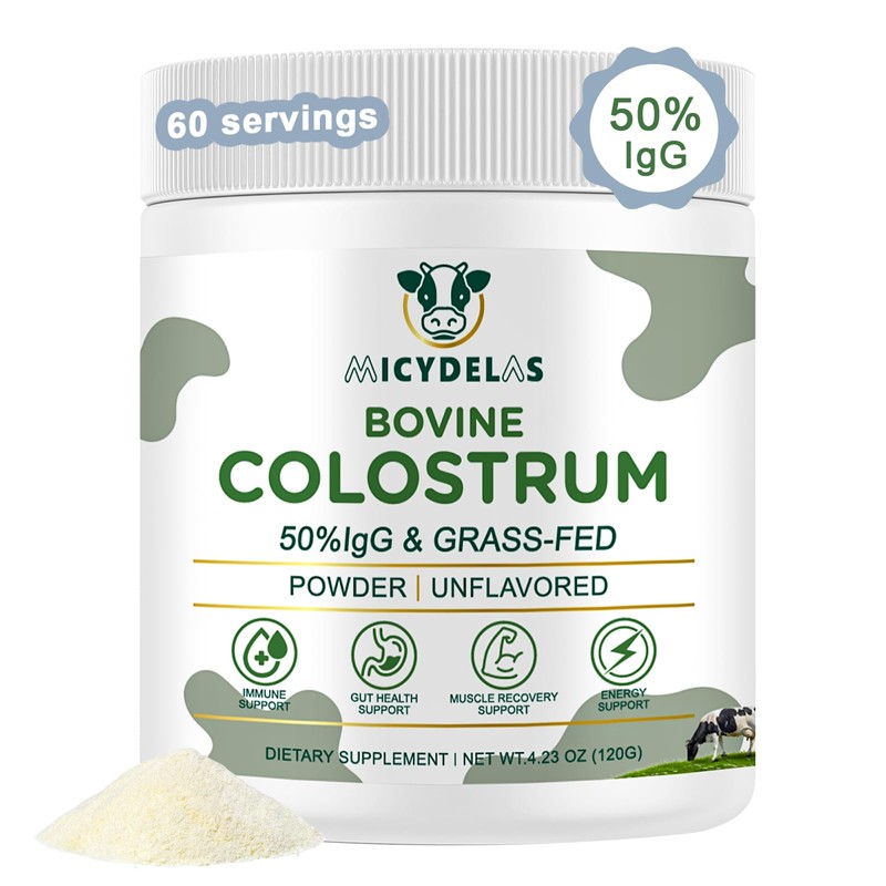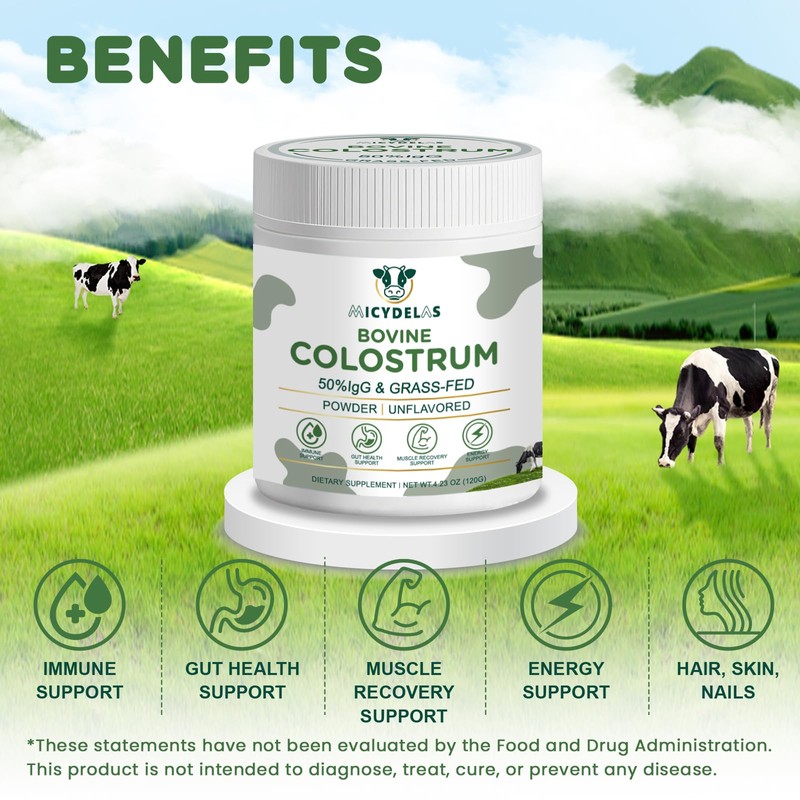 MICYDELAS Bovine Colostrum Supplement Powder 50% IgG Premium Bovine Colostrum for Gut Health Support, Immune Support, Muscle Recovery & Overall Wellness, Grass Fed, Non-GMO, Unflavored, 60 Servings
