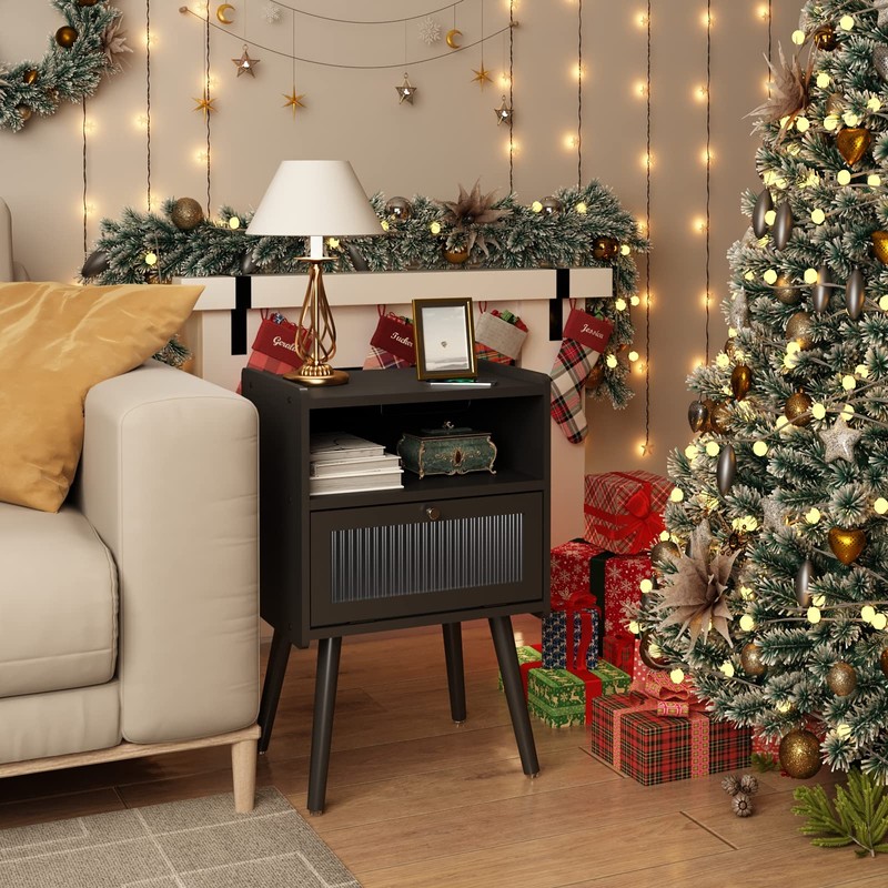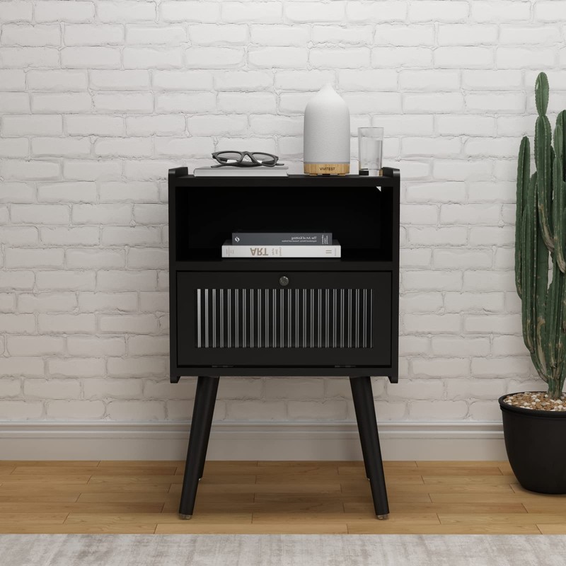 - STYLISH AND PRACTICAL NIGHT STAND - The bedside table features a two-tier storage design, a unique extra top shelf and a spacious tabletop with a glass door to fit your personalized home. It combines modern and mid century element makes the room look more stylish.