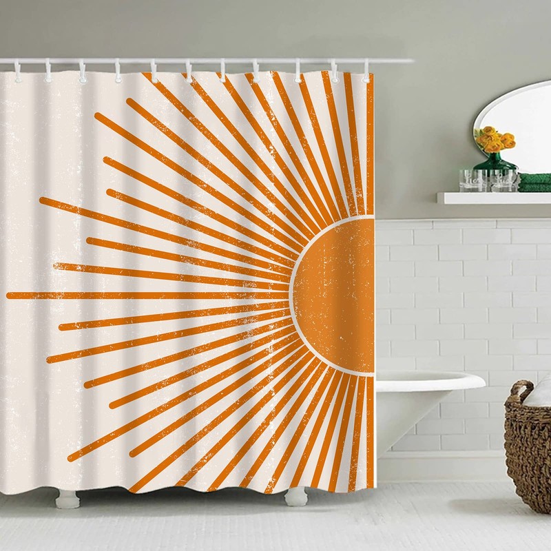 Mid Century Modern Shower Curtain, Abstract Minimalist Sun Aesthetic Bath Curtain Farmhouse Waterproof Polyester Fabric Bathroom Decoration with Hooks 72 * 72inch