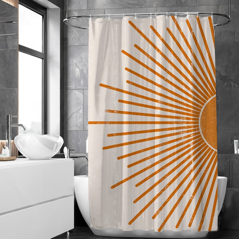 Mid Century Modern Shower Curtain, Abstract Minimalist Sun Aesthetic Bath Cur...