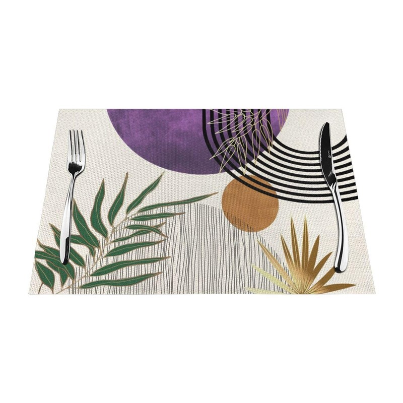 Mid Century Placemats 12x18 Inches Set of 4, Modern Boho Purple Green Tropical Leaf Decorative Rectangle Table Mats for Party, Home Kitchen,Dining Table Decoration
