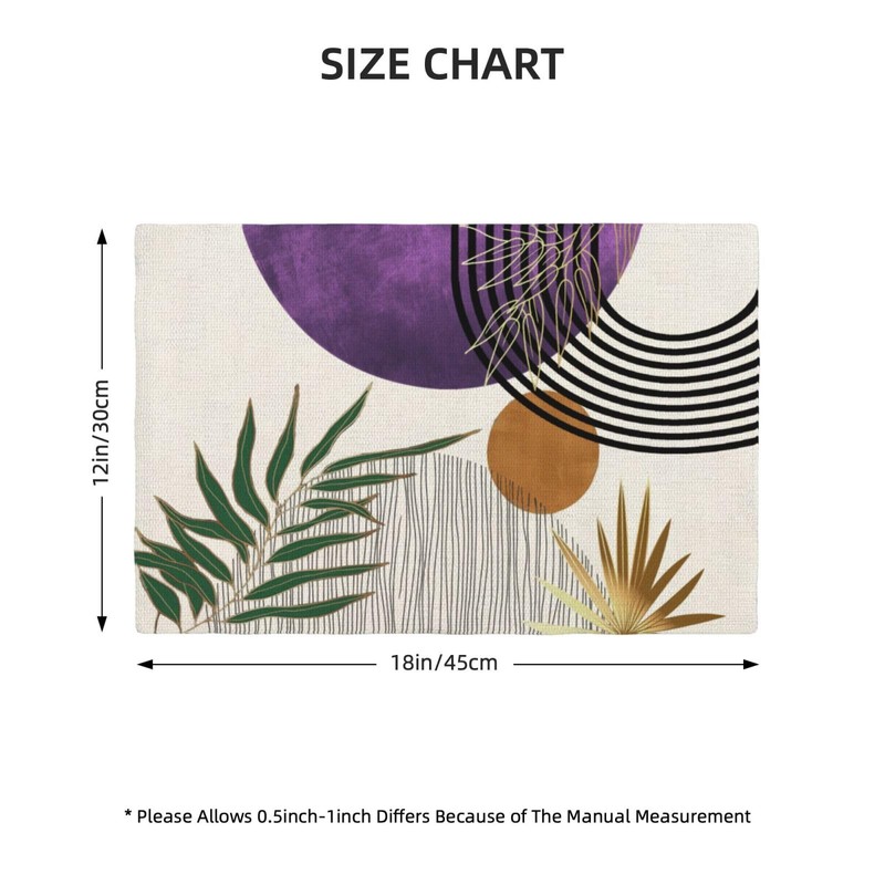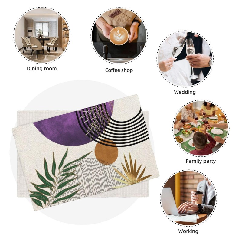 - 【Special Design】:The rectangle placemats are green cast with modern purple green tropical leaf art line pattern,and the decorative placemat is atmospheric and elegant to decorate the tables