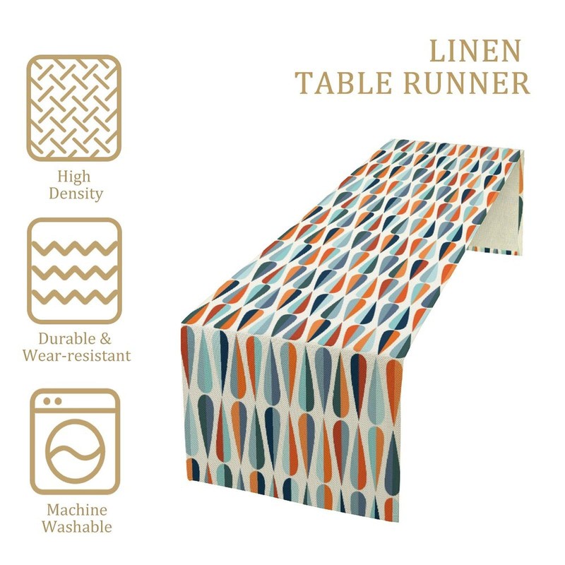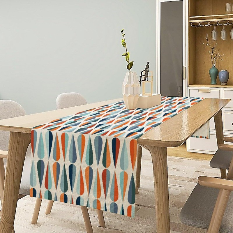 Mid Century Table Runner,Geometric Retro Drop Shapes Kitchen Table Runners for Family Dinner, Banquet, Parties and Celebrations, Modern Table Decor 13x90in